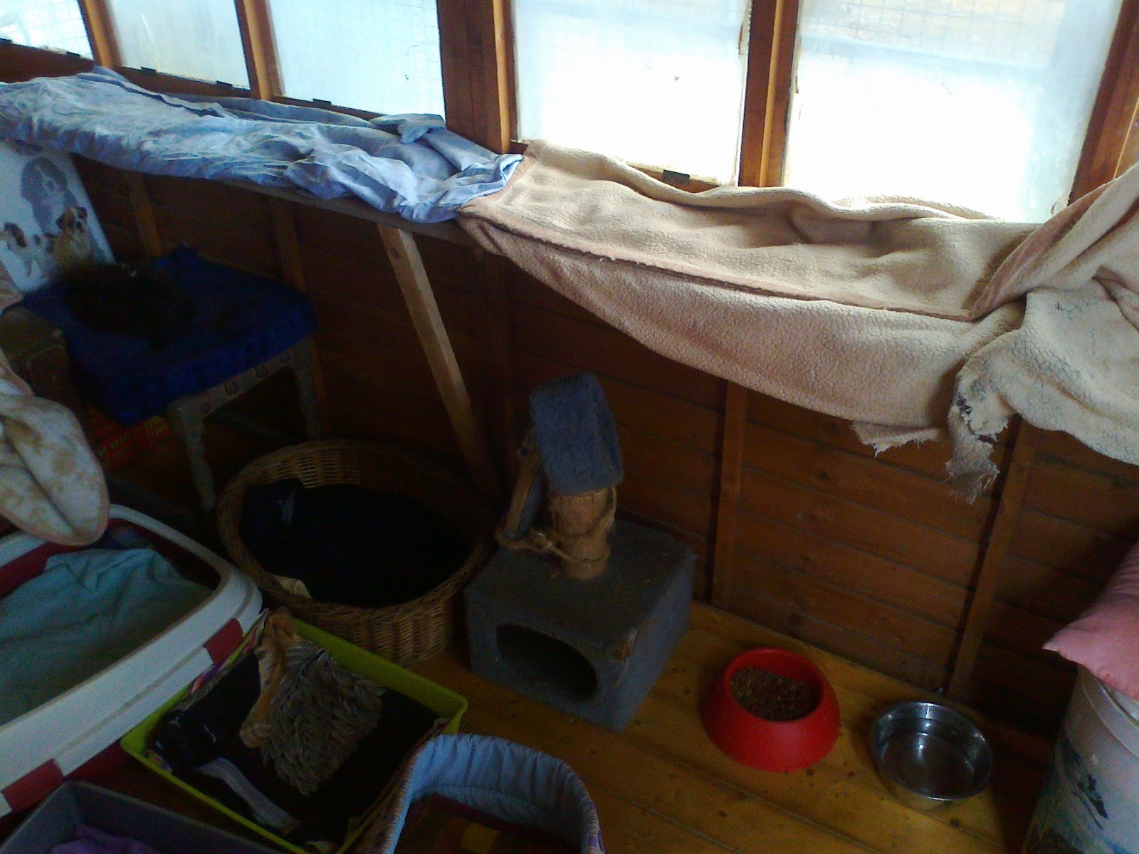 Zona 1 Casa Gatera-zona sanos: Zona interior donde se ubican todas las camas con sus mantitas, comederos, bebederos, rascadores para el conford del día a día de todos los gatitos de A.P.A.P.A. La mayoría de los objetos son donaciones realizadas por almas caritativas, desde aquí le damos las gracias.