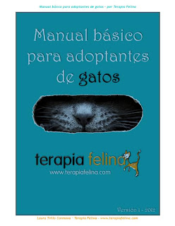 Queremos compartir con todos vosotros el Manual básico para adoptantes de gatos creado por Laura Trillo Carmona, terapeuta natural de gatos. En su web www.terapiafelina.com se encuentra disponible gratuitamente el manual en formato pdf el cual está dirigido a todas aquellas personas interesadas en adoptar a uno de nuestros gatos y para quienes tengan gato o no tengan gatos pero deseen aprender sobre ellos.